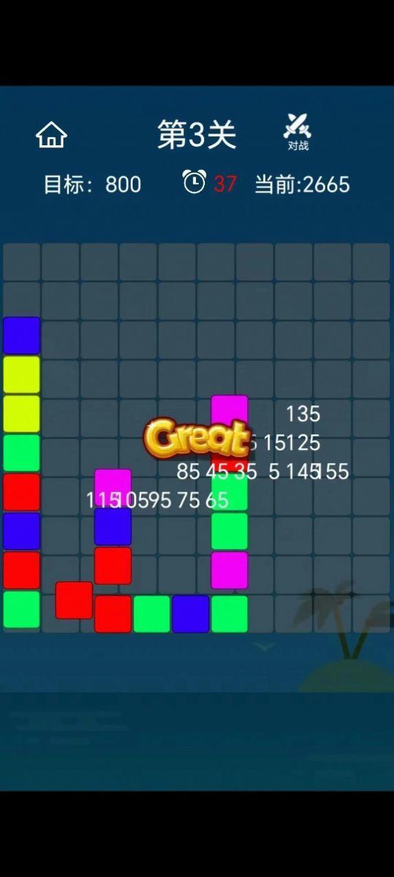 2. 消消小方块中独特的连击设计和道具系统,优雅连招、快速消除;