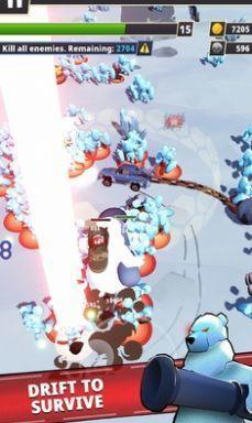 僵尸漂移竞技场中的玩家们需要开着车子然后使用车顶上的枪械去射击,打败所有敌人。