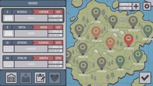 2、开设新工厂,使用强大的卡车运输货物,克服恶劣的天气条件并在路上驾驶卡车。