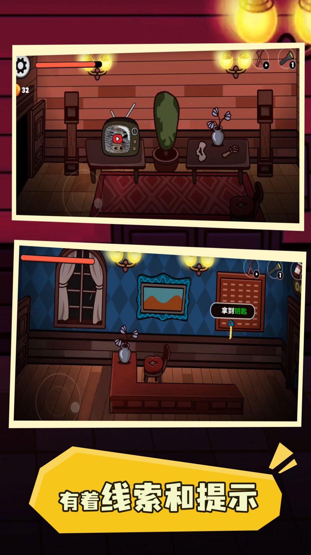 1、拥有逼真的密室场景和音效,体验身临其境的紧张氛围。