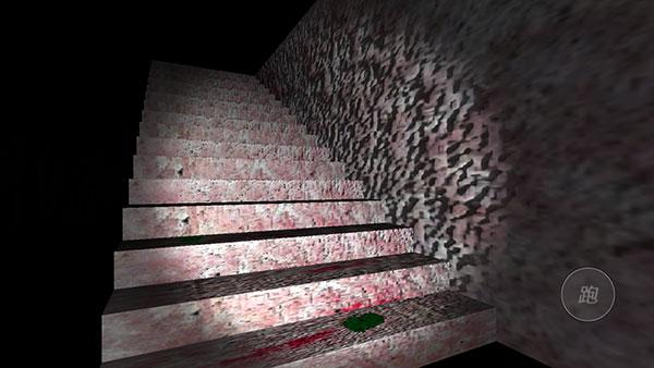 5、摸索着找到楼梯,发现楼梯变成带有红和绿的血迹;