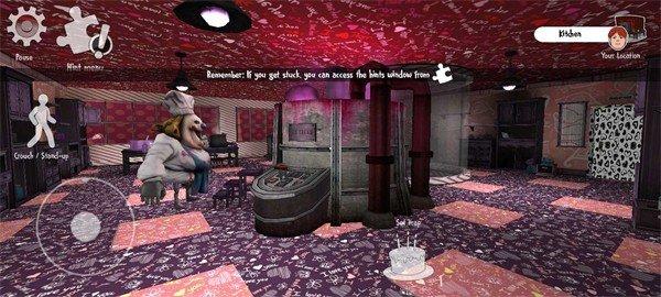 1、寻找游戏地中的一些道具,完成解谜冒险,躲避冰淇淋的追捕;