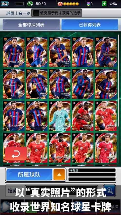 以真实球员照片的形式 收集世界知名球星卡牌!