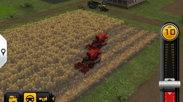 4、点击左下角的圆盘可让收割机直线行驶开,请开始你的收割之旅吧。