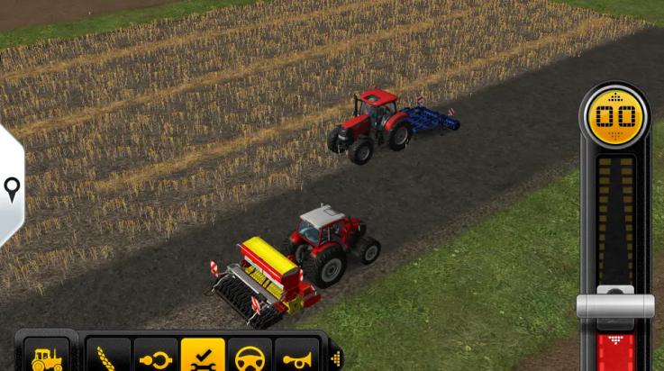 1、模拟农场14中需要组合的农用工具的头部,屏幕右边是变速杆,控制车辆的前进,控制车辆转向。