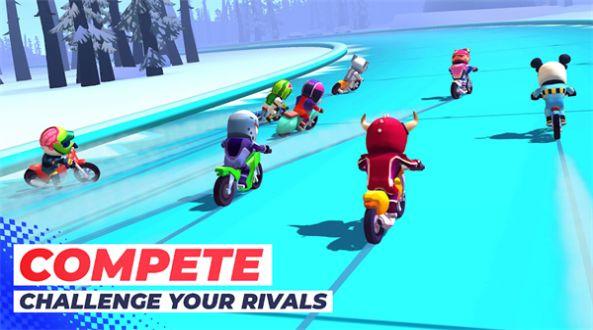 2、解锁不同的地域,驾驶小摩托和其他的伙伴们比赛。