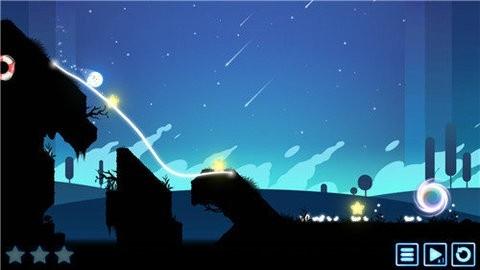 3、玩法是利用星光画出一条线,以此引导小狐狸滚动,到达光圈所在地即可。途中掉落山谷或者跑出画面外就算失败。关卡到后面就会越来越难,专门考验人的耐心和不手残能力。