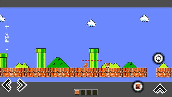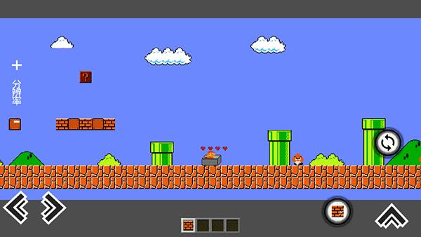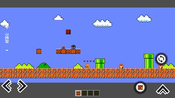 究极玛丽手游是大神根据“超级马里奥”而自制的一款同人游戏,这款游戏保留了马里奥的经典闯关玩法,新增了一些武器道具,例如宝剑,苹果,砖块等道具,游戏中玩家可以用马里奥使用这些道具去战斗,对抗路途中的敌人,通过一个个的关卡,这款游戏自带按键,玩家玩起来更加的简单和轻松,快来下载体验一下童年的味道吧。