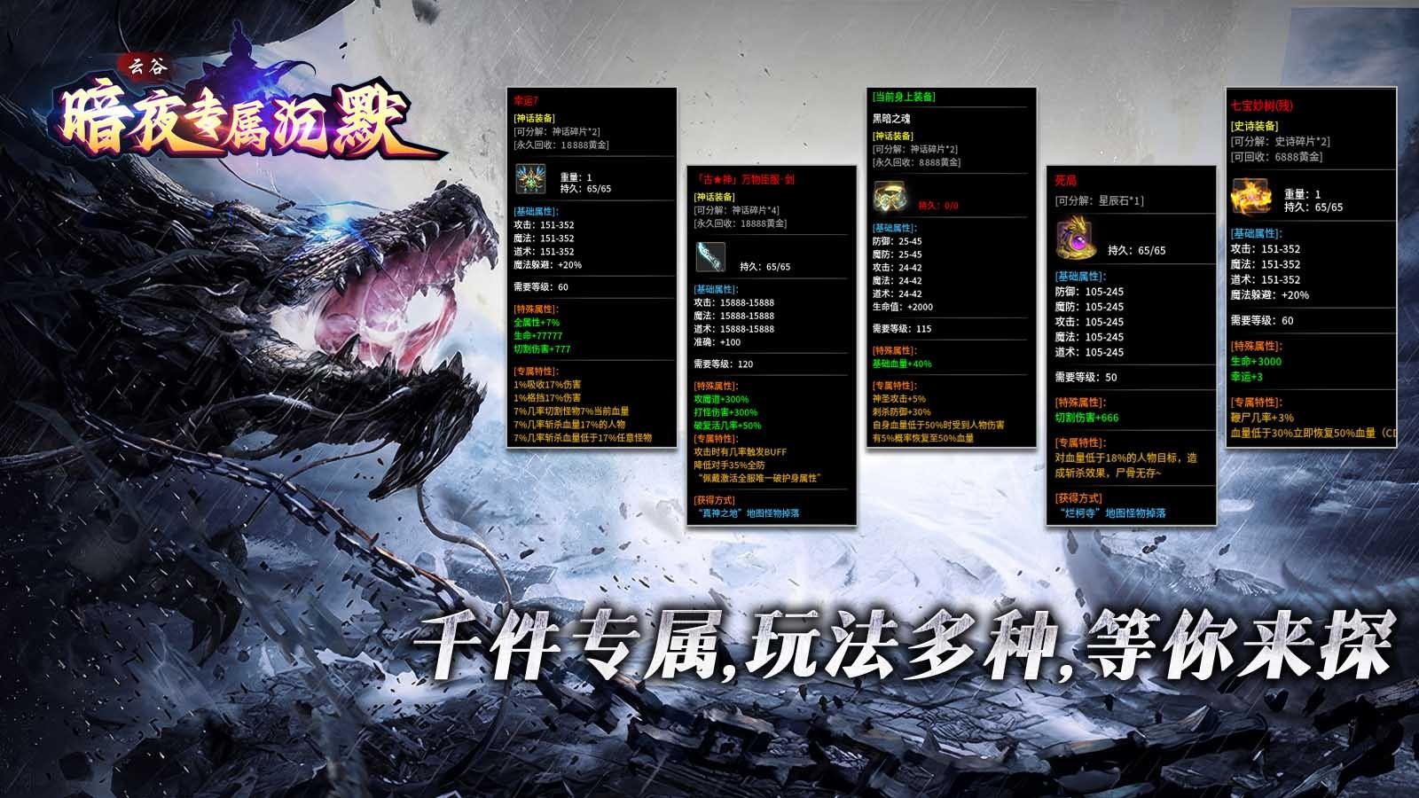 这款云谷暗夜沉默传奇手游,讲玩法的多样性,创新的丰富内容,以及多彩的挑战,清晰展现给了所有玩家。