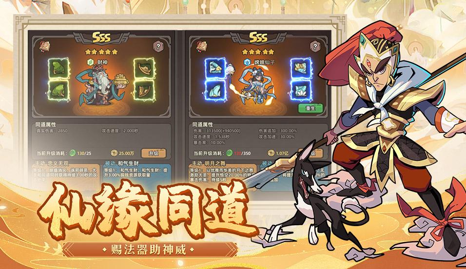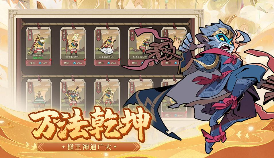上海美术电影制片厂正版授权的西游题材放置RPG手游。你将扮演学艺归来的美猴王孙悟空,挥起如意金箍棒,从花果山水帘洞,一路打到凌霄宝殿、斗至五行山下,将三界搅个天翻地覆!游戏巧妙融合了Roguelike与放置推图玩法,24小时不间断的随机奇遇,让玩家时刻置身于大闹天宫的神话世界。