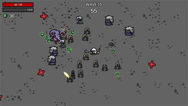 拾取经验进行升级,并在每波敌袭的间隔去商店弄点道具吧!