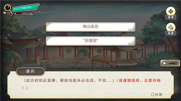4、遇见剧情走向选择时要谨慎,这个关乎到后续发展。比如,下图这个你要是选择亮明身份就会被暗箭杀死,游戏结束。