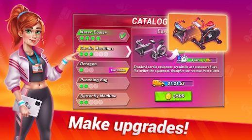 2、随着游戏的深入,玩家可以开设更多分店,引入更多健身项目,扩大业务规模;