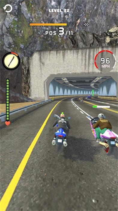 摩托狂怒3D(Moto Rage 3D)是一款摩托竞速游戏。玩家可以驾驶摩托车在不同的赛道中疾驰,你还可以撞击其它对手,同时也能使用武器击打对手。游戏的进度会实时显示在屏幕正上方,成功到达终点即可获得奖励。游戏的玩法相对刺激。