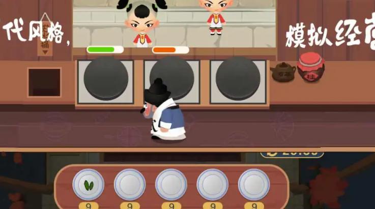 2、卡通的游戏画面,放置自己的店铺,招募更多的人才,为你出谋划策。