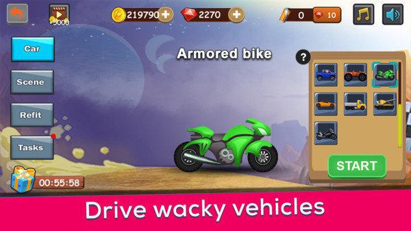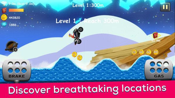 1. 在游戏中,玩家需要操作摩托车在冰山赛道上爬坡。