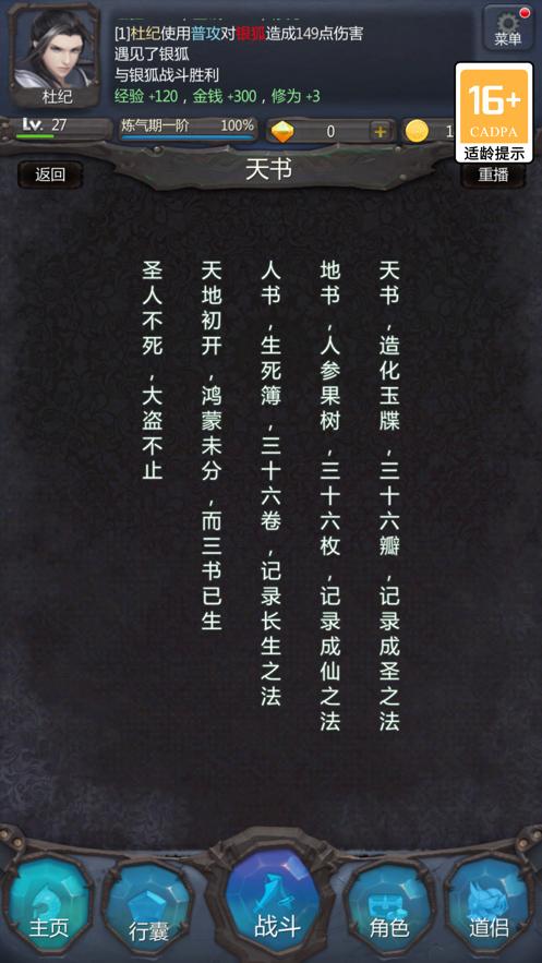 一个修仙梦,一段修仙故事,一款放置类文字游戏。