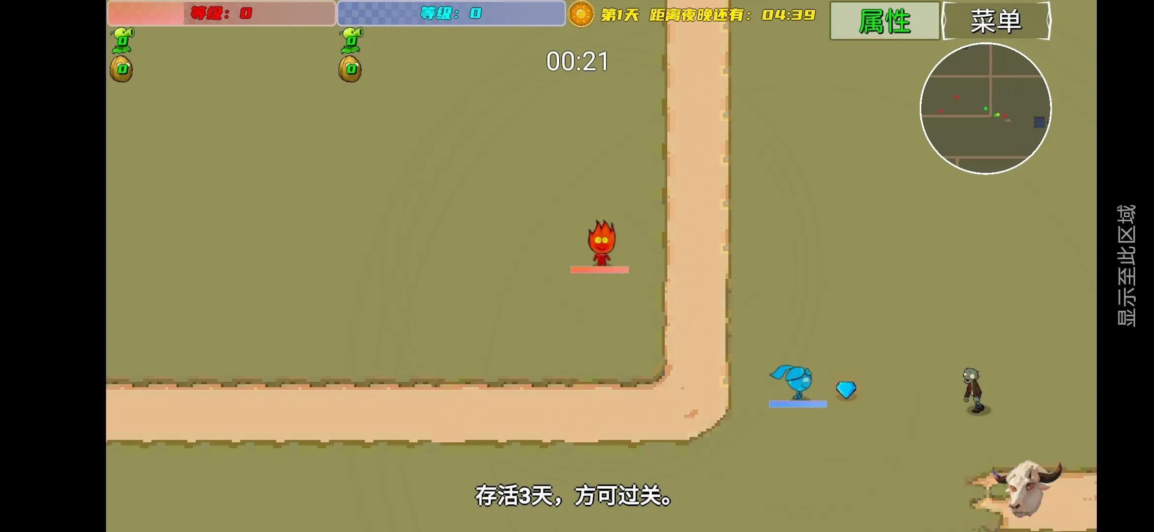 冰火人幸存者由B站UP头牛o自制的冰火人改版游戏,由玩家控制活人,AI控制冰人,存活三天三夜即可获胜。游戏中一个昼夜是显示的六分钟,白天五分钟,夜晚一分钟,选择的难度越高,白天的时间就会越短,夜晚的更长。白天相对安全,适合探索,击杀敌人会掉落宝箱和宝石,拾取宝箱获得武器和装备,获得宝石升级武器和装备