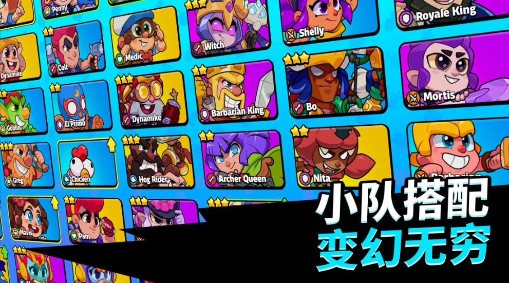 每场对战都独一无二、妙趣横生! 壮大小队、击败首领、与好友对战,收集来自Supercell游戏的角色并让他们觉醒,包括《部落冲突》、《荒野乱斗》、《卡通农场》、《皇室战争》和《海岛奇兵》中的各种角色!