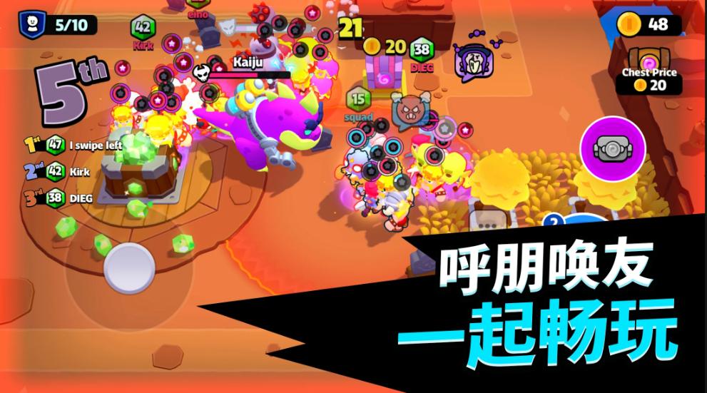 10位玩家上演史诗对战,地图多变,玩法多样,跌宕起伏的战况让每场对战都充满新乐趣!全力以赴收集全场最多宝石!