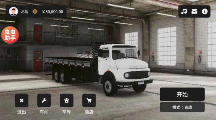 2、载入场景后,玩家会看到自己的卡车。点击右上角的菜单,找到钥匙按钮,启动引擎。