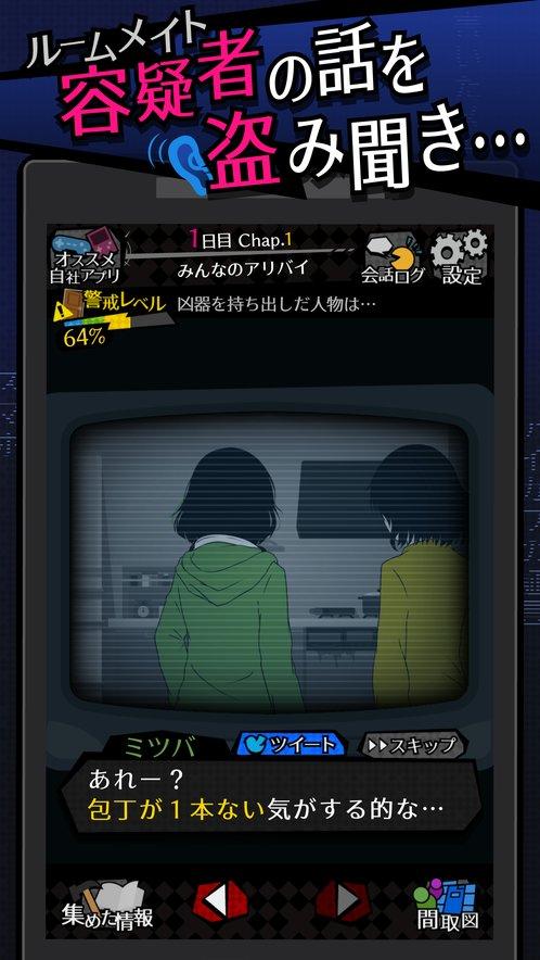 今天我也在监视你安卓版(シェアハウス)是一款推理解谜冒险游戏,这款游戏构建了一个现代化的场景,玩家在游戏中可以在多名不动角色之间收集线索证据,并且可以让玩家通关细微的观察和推理来找到游戏当中的罪犯,游戏中设置了许多不同的场景来让玩家进行探索,去发现更多的内容,感兴趣的就下载吧。
