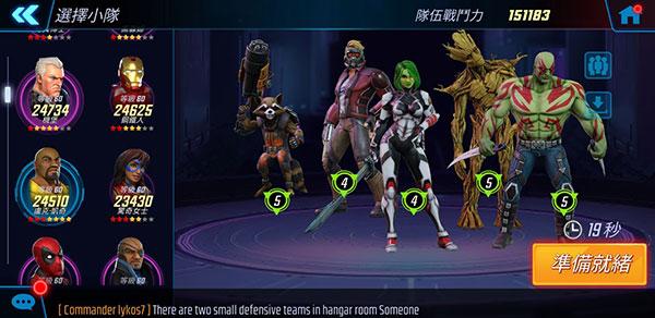 这队没拆buff续航力又不佳,第一波攻势没打出优势还挺容易被磨死的……战力没撑高不好用。不过单独拆出两三人使用还不错,星爵/浣熊能沿用到科技队。