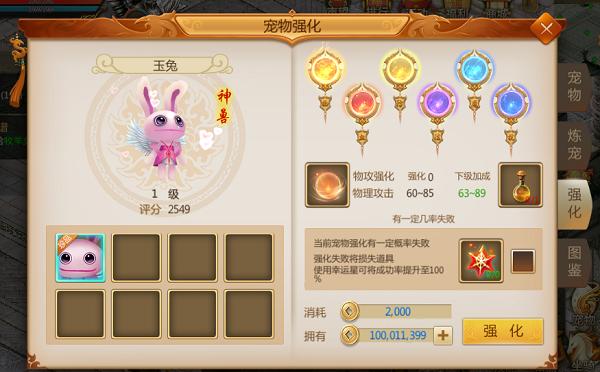 每个属性的每一级强化都是不同的,强化等级越高,属性加成越大,最高9级。所有属性均为百分比提升,即宠物的基础属性越好,强化对其加成效果越大。