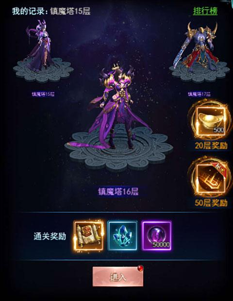 镇魔塔是法宝藏宝图最主要的产出来源。爬塔层数达到要求还可以额外获取高额奖励。此外镇魔塔有排行榜功能,快速提战力,登顶镇魔塔将成为每个玩家追逐的方向。