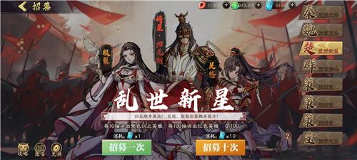 通过主界面“招募”功能进入英雄招募界面,消耗招募令或玉币来招募英雄。