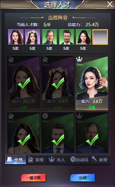 众多人才可供选择,你不是一个人在战斗!演艺圈、体育圈、名人圈,只要你想挖的人才,统统都有可能成为你的左膀右臂。