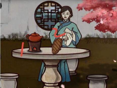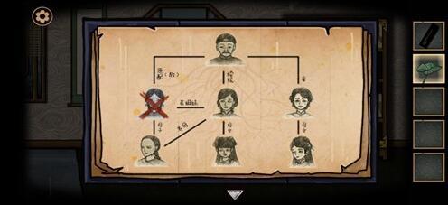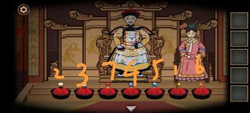 5、点击夫人(续弦)袖子中的⑤遗书,交给老爷。再点击老爷头上的黑色对话框,按照下图顺序点击夏朝冠(帽子)进入下一章。