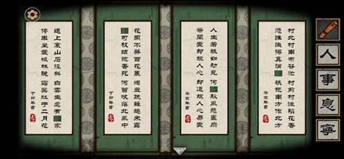 5、根据柜门上的数字提示,提取右边4张字中对应的字。⑤分别为:人、宁、息、事。