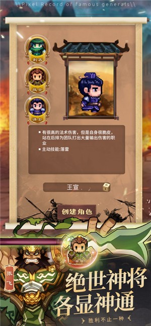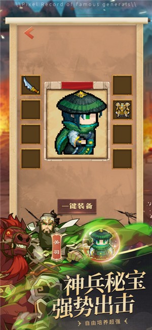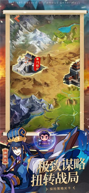 3.像素风格设计,丰富的场景,每个武将都有非常鲜明独特的造型,在外观上还可以不断的改变!