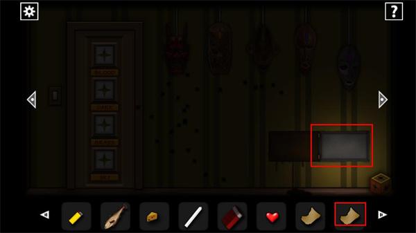 6、往右走在这里有面具可以调动,由于整个场景非常黑所以看不清整个面具到底是怎么进行移动非常正常(这个面具上面的调整提示就是之前书架上面的书上面提示)面具调整好了之后下面的柜子就会打开,在里面可以获得一个碎片。