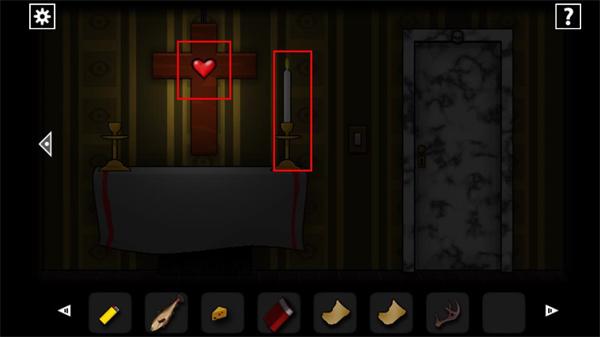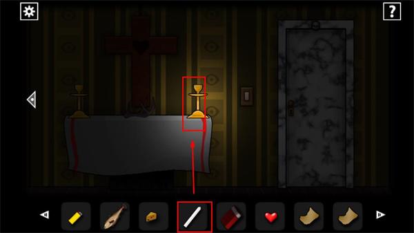 28、来到之前打开灯的房间当中,在烛台下面位置可以找到十字架。之后来到之前出现鬼的地方,将红宝石对这个石板使用。