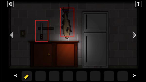 2、接着使用钥匙打开右边的门,进入这个门当中,在前面的餐桌上面找到鱼还有刀。