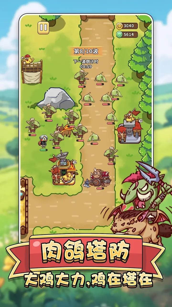 肉鸡保卫战是一款全新的为肉鸽割草的塔防游戏,在游戏中你可以通过公牛冲撞造成的塔防获得彩蛋材料,并不断强化和升级自己的实力和装备来对抗各种boss。
