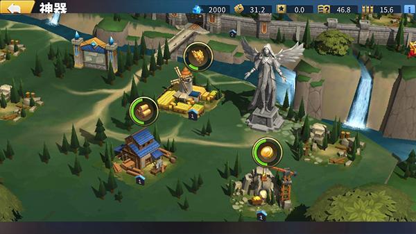 3、在游戏内还有非常重要的主动技能,那就是神器,通过使用神器技能可以大幅提高队伍的作战能力,每种神器的技能都不一样,包括范围攻击、回血、控制等等。