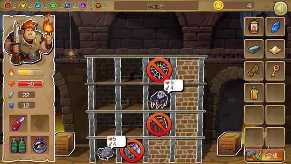 1、地牢探险每一层地图都是随机的,每次游玩都会有不同的体验。