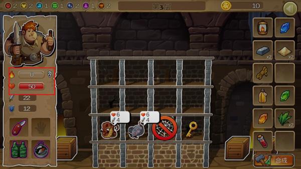 在游戏中我们可能会血量没有了,或者是灯火没有了,这些都是非常的危险的东西,玩家一但没有了就用现有的装备来合成,当然了如果不合成我们就可以直接的推出地下层,这样冒险的地下层都是不会保存的。