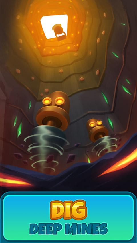 深城官方版是一款非常好玩的经营放置游戏,英文名称Deep Town,该游戏画面融合科幻元素与地下城暗黑色调,采用卡通动画的画风,拥有精致细腻的画面,轻松有趣的玩法。在游戏中,你将成为是一个蒸汽朋克大头身的机器人,呆萌的表情和圆圆的大眼睛与电影《机械迷城》里的机器人十分相像,玩家将跟随他一起深入地下矿区,获取宝藏,探索神秘的地下世界。深城游戏主要玩法是挖矿,玩家在游戏中主要的目的就是不停地挖矿,一开始可能会挖到一些不值钱的矿石,不过把它们卖掉,就能够有更多的金币来升级你的装备了。除了利用激光射线打穿底层来获取矿产资源外,还可以花钱指派机器人前往自动挖掘,可以利用低温冷冻、火焰爆炸等技术加速采集速度,创意十足玩起来乐趣无穷。当有了足够的金币和资源,你就可以对采矿装备进行升级,学习更高级的技术,或者建造采矿站和车间了,这样采集的资源就可以快速的进行冶炼、锻造、销售,大大缩短制作流程,让你能够轻松收获大量金币和矿藏。