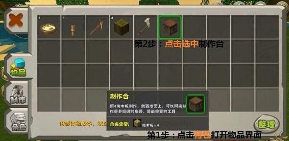 制作台在地上,再点制作台才能打开制作界面,才能合成道具