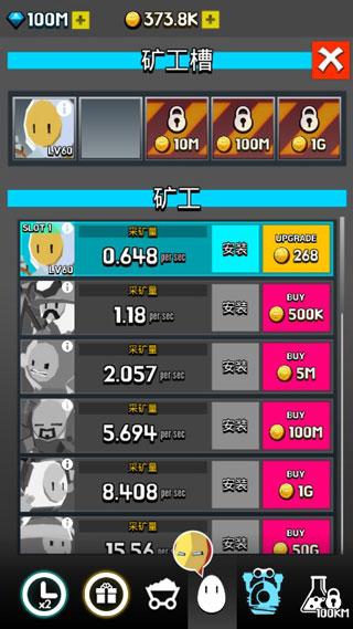 2、采集的珍贵矿石可以在商城自由买卖,赚取金币升级挖掘机与矿工。