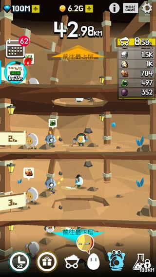 1、轻松简单的放置类挖地游戏,玩家可以挖掘各种珍贵的矿物,还有各种辅助挖地的道具哦。