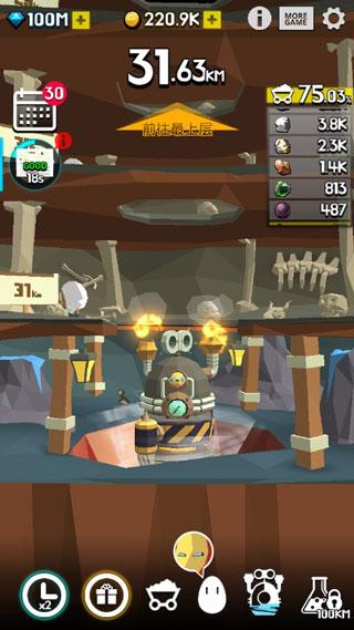 游戏中,注意对你的矿机进行升级,从而可以使你钻的更深,而配置能力更强的矿工可以是你的工作效率变得更高。这期间可能会发生各种有趣的突发事件,这就需要灵活的进行应对,考验你的时候到了!