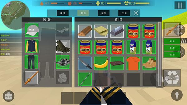 分解物品获得材料,制作工具武器和其他的赖以生存的用品,使用鱼竿和鱼饵钓鱼。