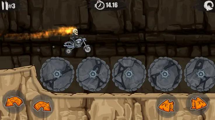 1、玩家开始游戏,左边的按钮前后翘头,右边则是控制摩托车前进和后退。