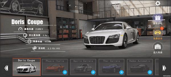 2、你可以从经典的城市轿车、现代轿车、炫酷跑车中任选一辆极速飙车体验;