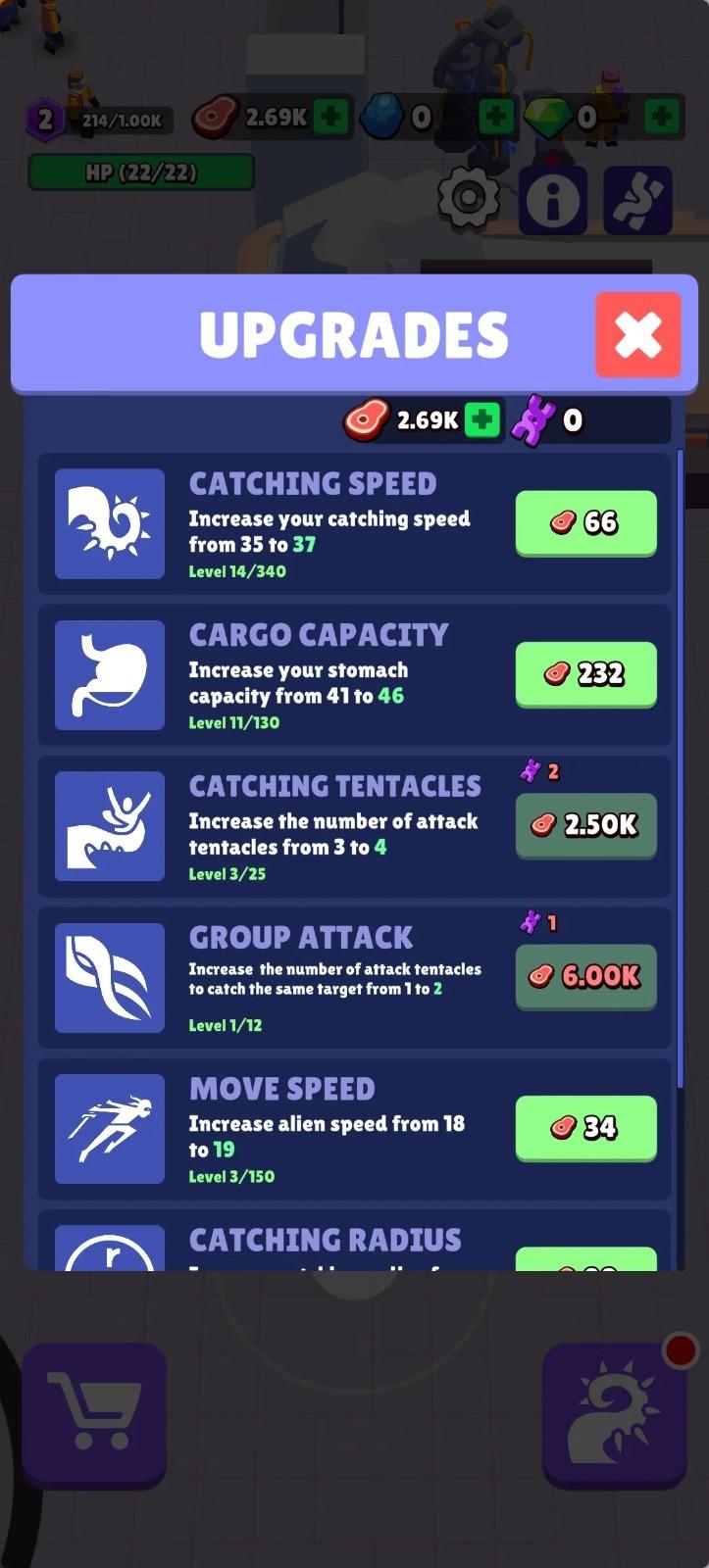 4、当食物足够后,可以用来升级自己的能力。